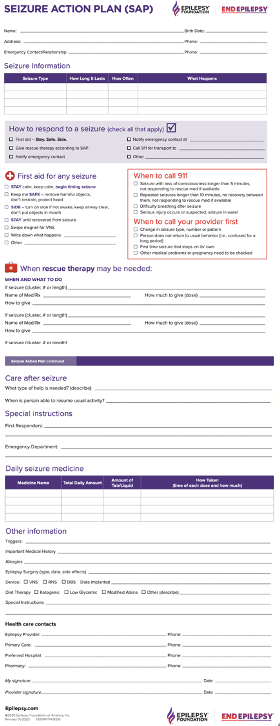 - Seizure action plans